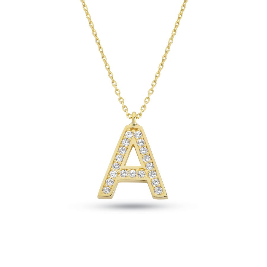 14 Carat Gold Stone Letter A Necklace