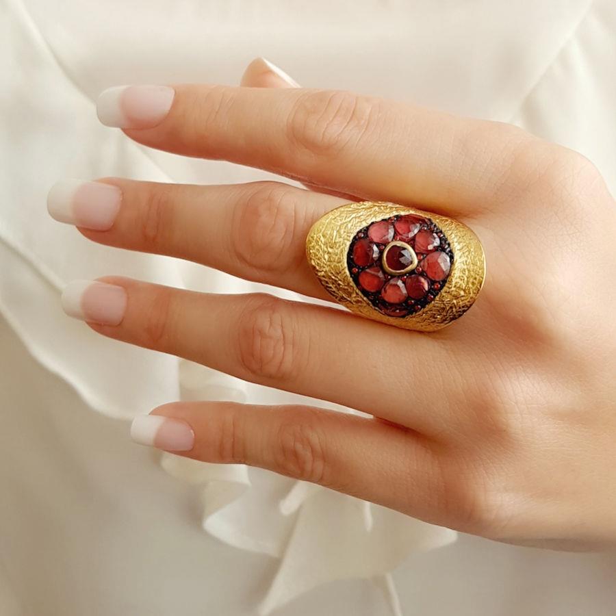 Özel Tasarım Granat Taşlı Kadın Gümüş Yüzük