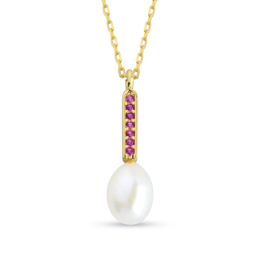 Ruby Gerçek Damla İnci Gold Kadın Gümüş Kolye