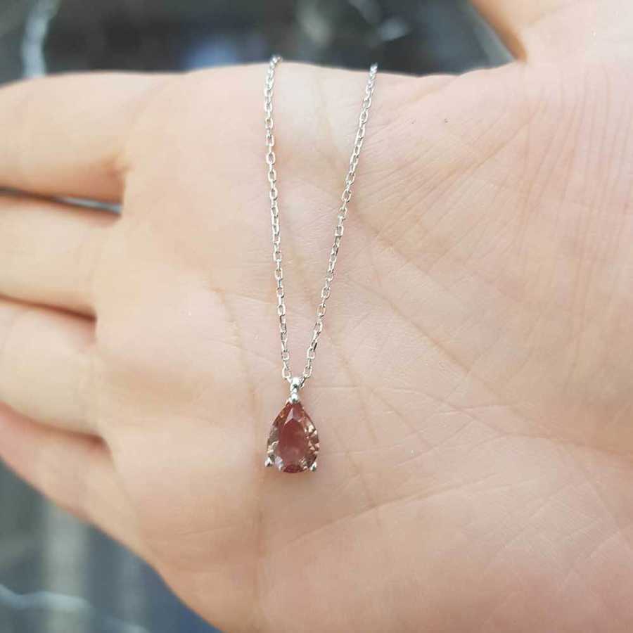 Zultanit Taşlı Küçük Damla Gümüş Kadın Kolye